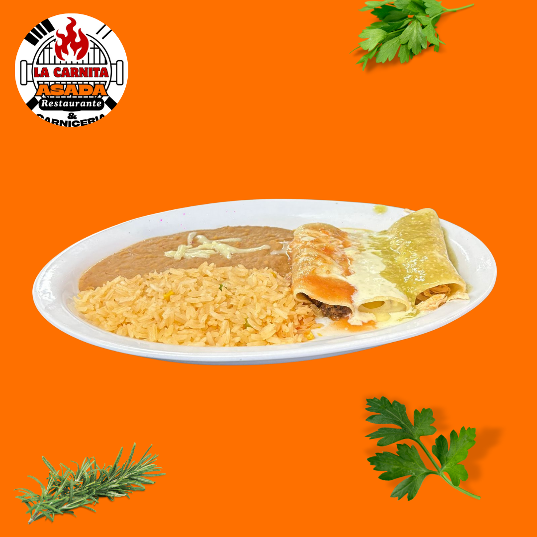 Enjoy the ultimate enchilada experience with our Trio Enchiladas Platter, a colorful and flavorful combination of three enchiladas — each with its own unique taste and style. One is filled with tender chicken, another with melted cheese, and the third with seasoned ground beef, giving you the perfect variety in one delicious plate.