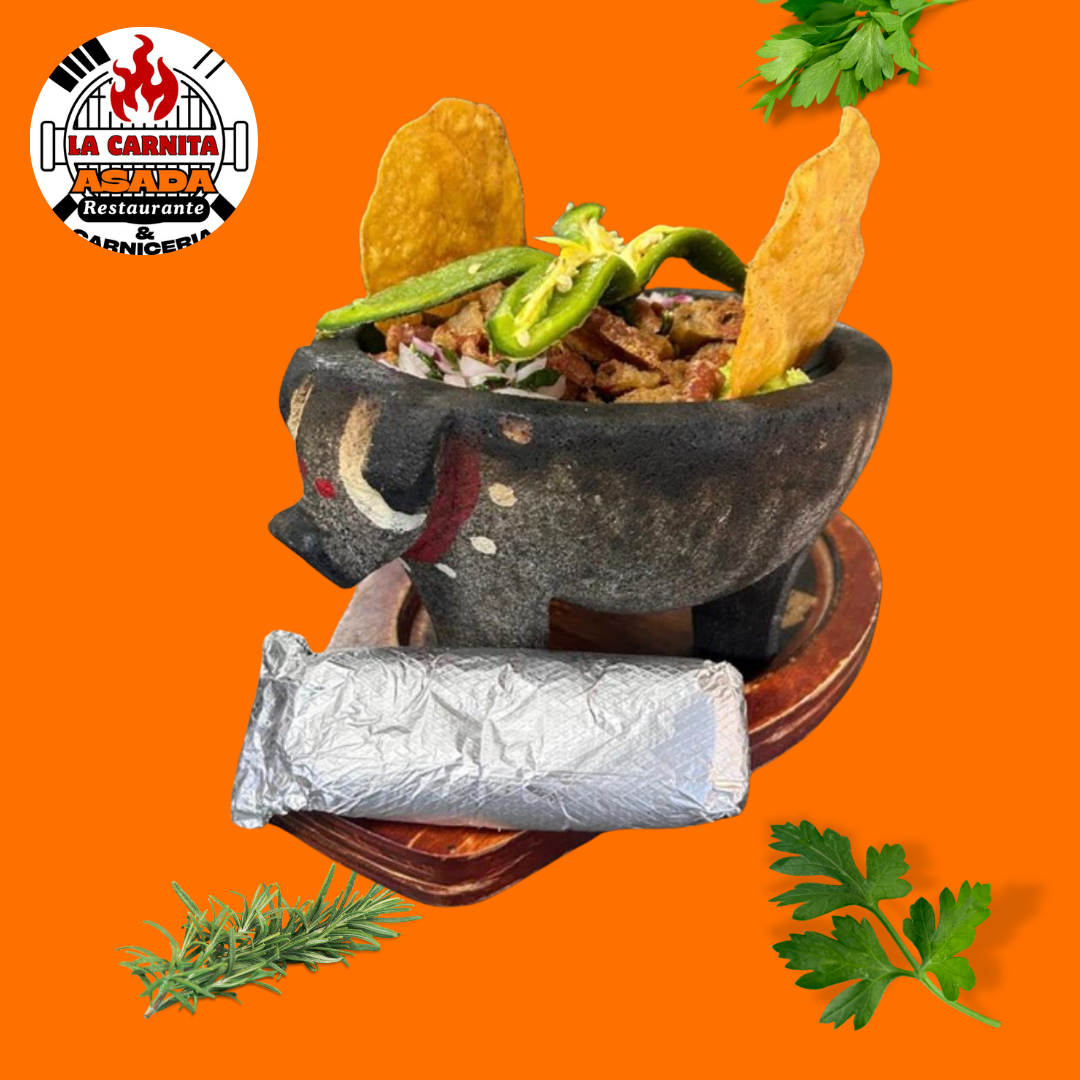 Crunchy fried tripa de res tips served on top of our delicious house guacamole, pico de gallo, tostada, lime and red onion garnish.